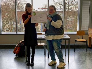 Am 24. Januar übergab Frau Anderka, Schulleiterin der Uhlandschule, feierlich einen Spendenscheck im Wert von 500 Euro an den Verein Schlupfwinkel der Caritas Stuttgart. Bei der Übergabe der "Winterzauber"-Erlöse waren auch die Klassensprecherinnen und Klassensprecher der Klassen 7 bis 10 anwesend. Die Schülerinnen und Schüler konnten bei dieser Gelegenheit Fragen zur Arbeit von Schlupfwinkel stellen und sich über die Verwendung der Spendensumme informieren. Schlupfwinkel ist eine Anlaufstelle für auf der Straße lebende Kinder und Jugendliche in Stuttgart. Diese können sich dort nicht nur aufwärmen und etwas essen, sondern finden auch ein offenes Ohr in zahlreichen Hilfsangeboten.